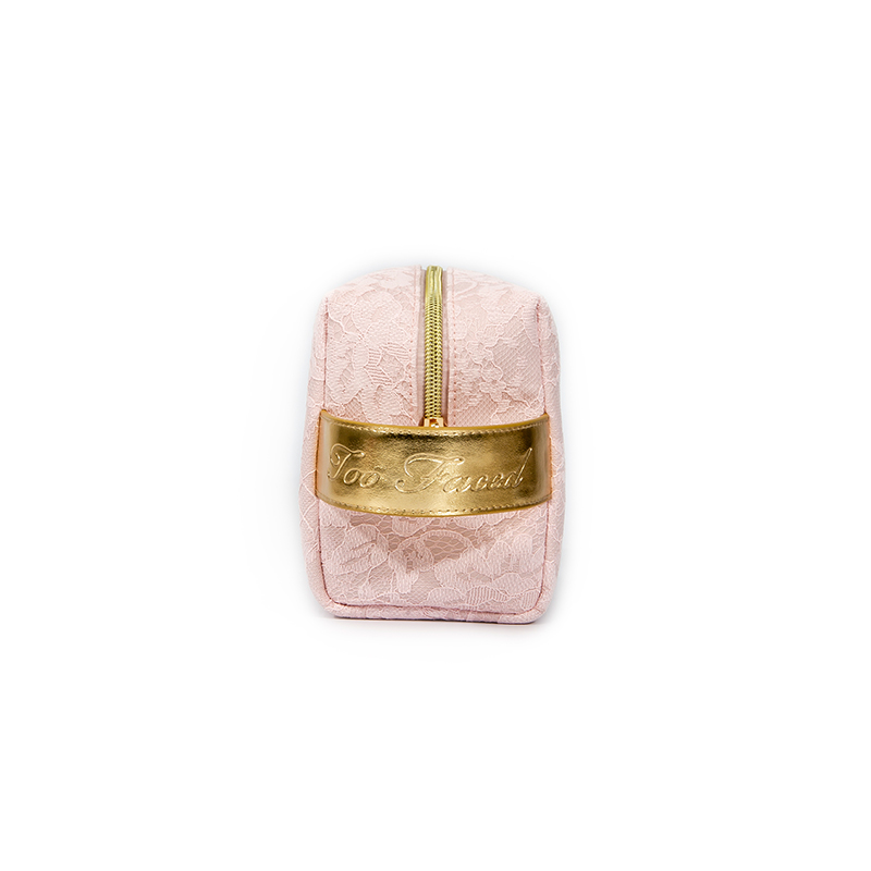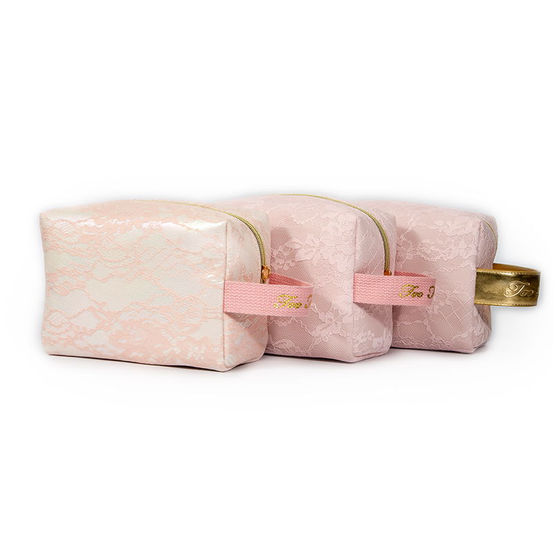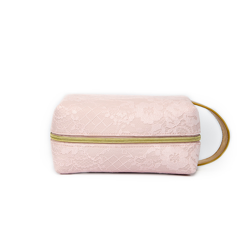 Pink Lace PU Makeup Bag – Square Cosmetic Case with Gold PU Handle