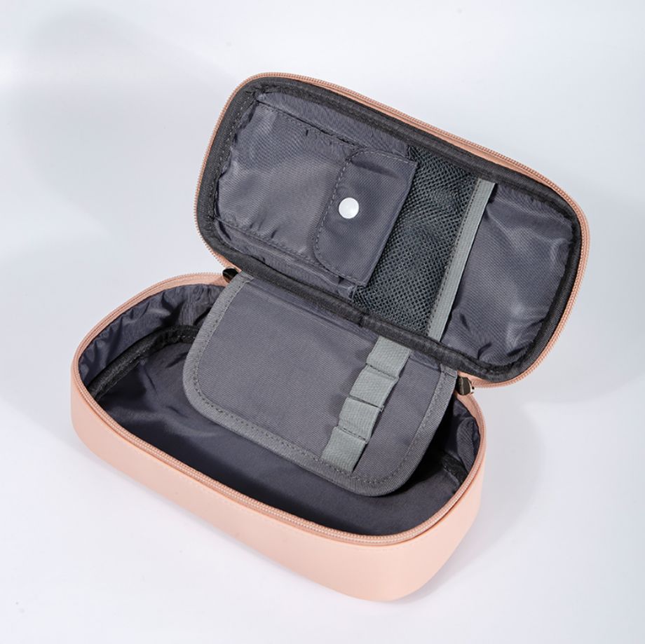 This portable travel toiletry bag is designed for convenient storage of cosmetics, toiletries, and personal care items. Featuring a durable structure, smooth zipper closure, and comfortable handle, it is ideal for travel and daily use. The compact yet spacious design ensures easy organization while maintaining a stylish appearance.